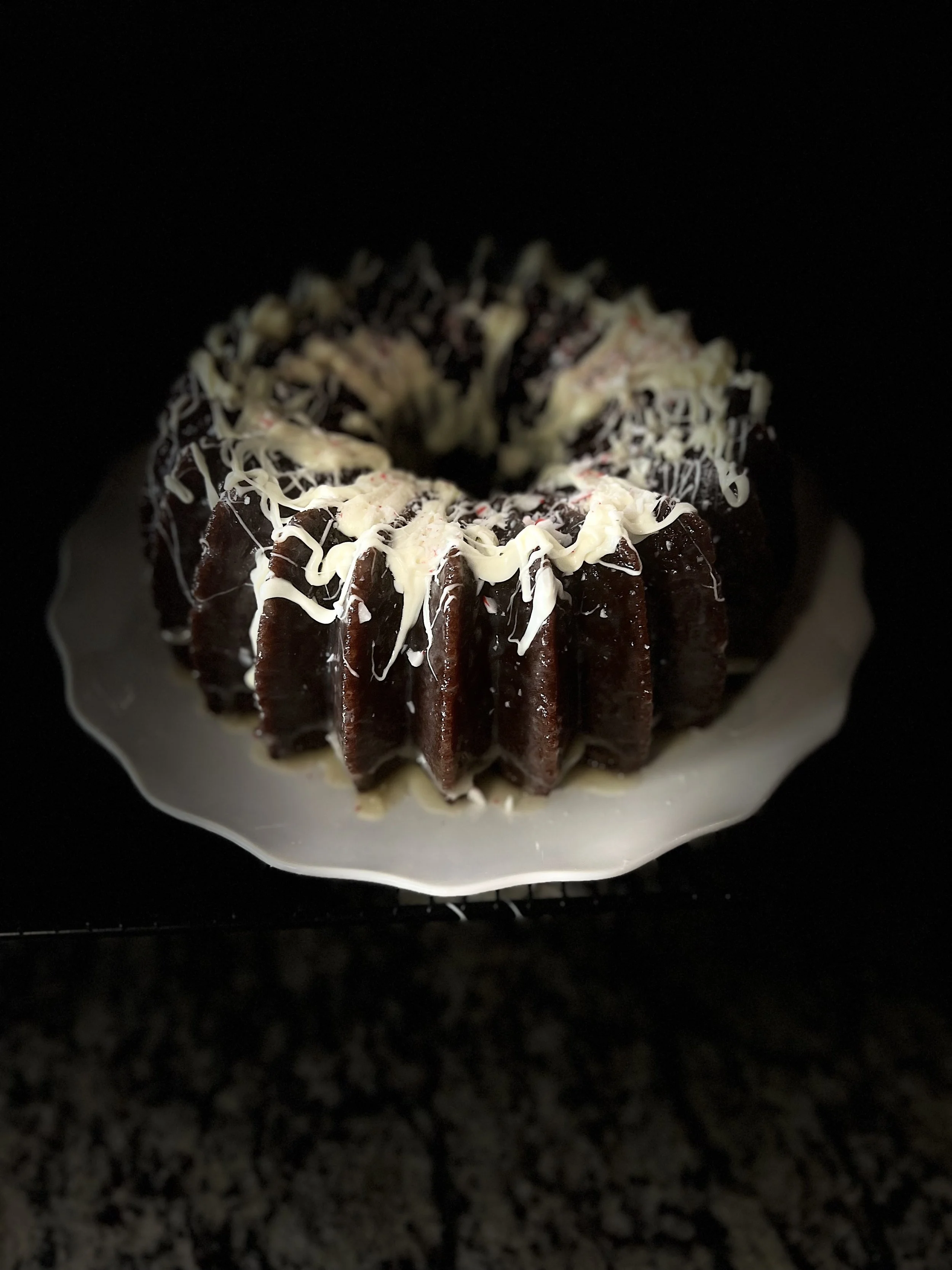 A moist, decadent chocolate cake infused with smooth peppermint rum, luxuriously soaked in a velvety cream rum sauce, and finished with a silky white chocolate drizzle and a sprinkle of crushed peppermint. A comforting classic with a grown-up twist.